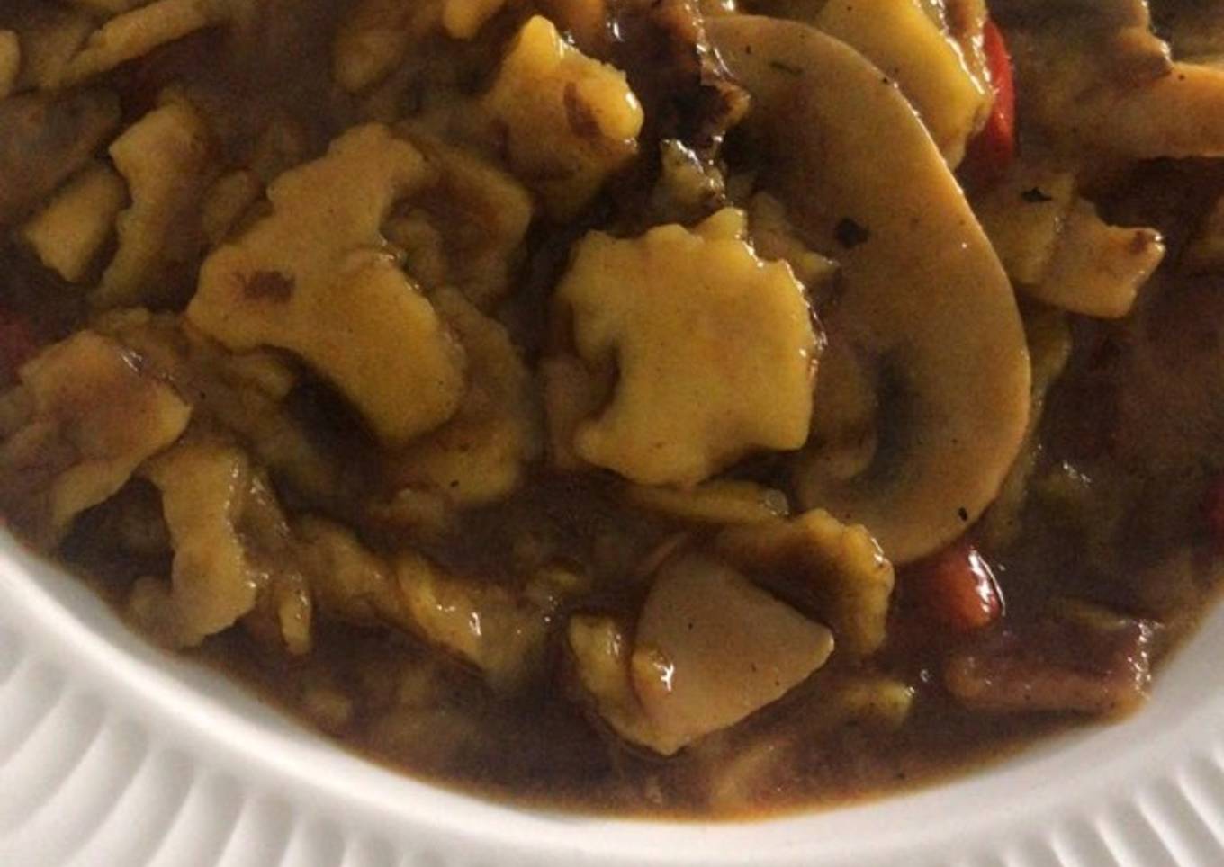 - Cuando rompe a hervir le añadimos la pasta de gazpacho- le bajo el fuego- to pruebo de sal y lo tapó unos diez minutos. Si falta caldo lo añado y list para tomar