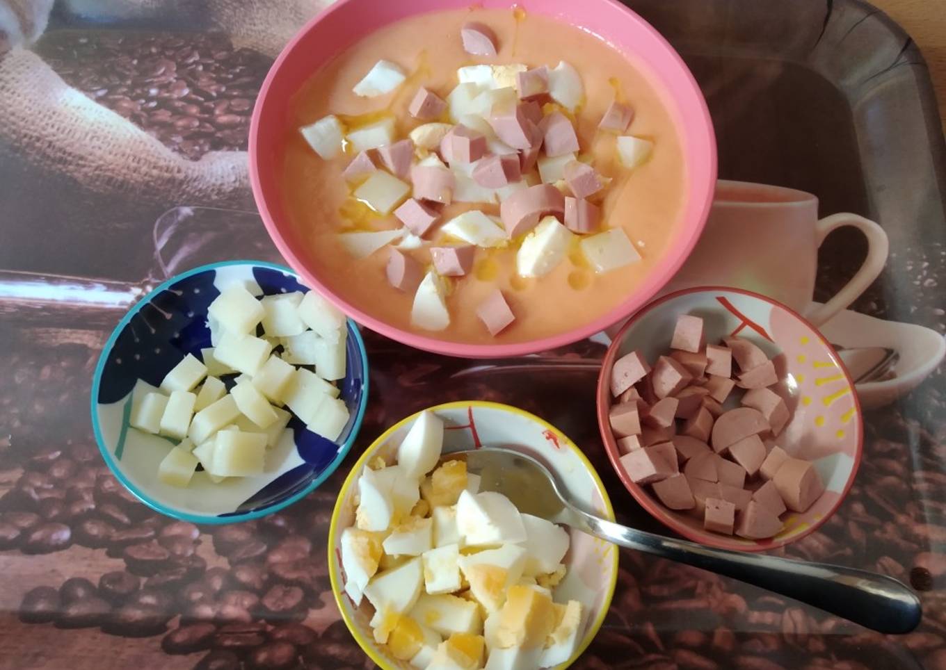 Hey everyone, hope you're having an amazing day today. Today, I will show you a way to prepare a distinctive dish, Salmorejo a mi manera. One of my favorites. For mine, I will make it a bit tasty. This will be really delicious.