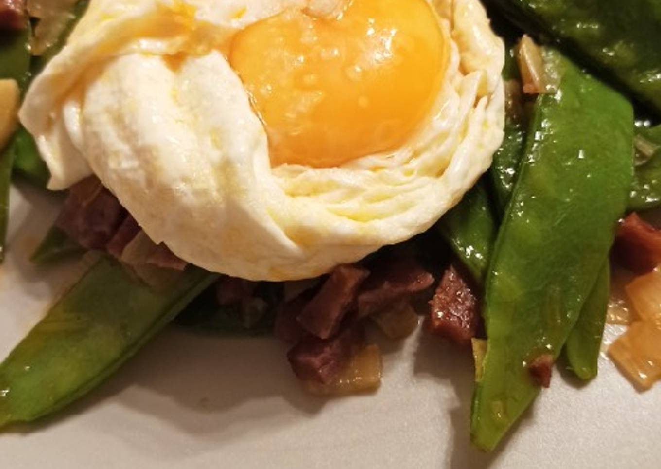 Bisaltos salteados con huevo plancha