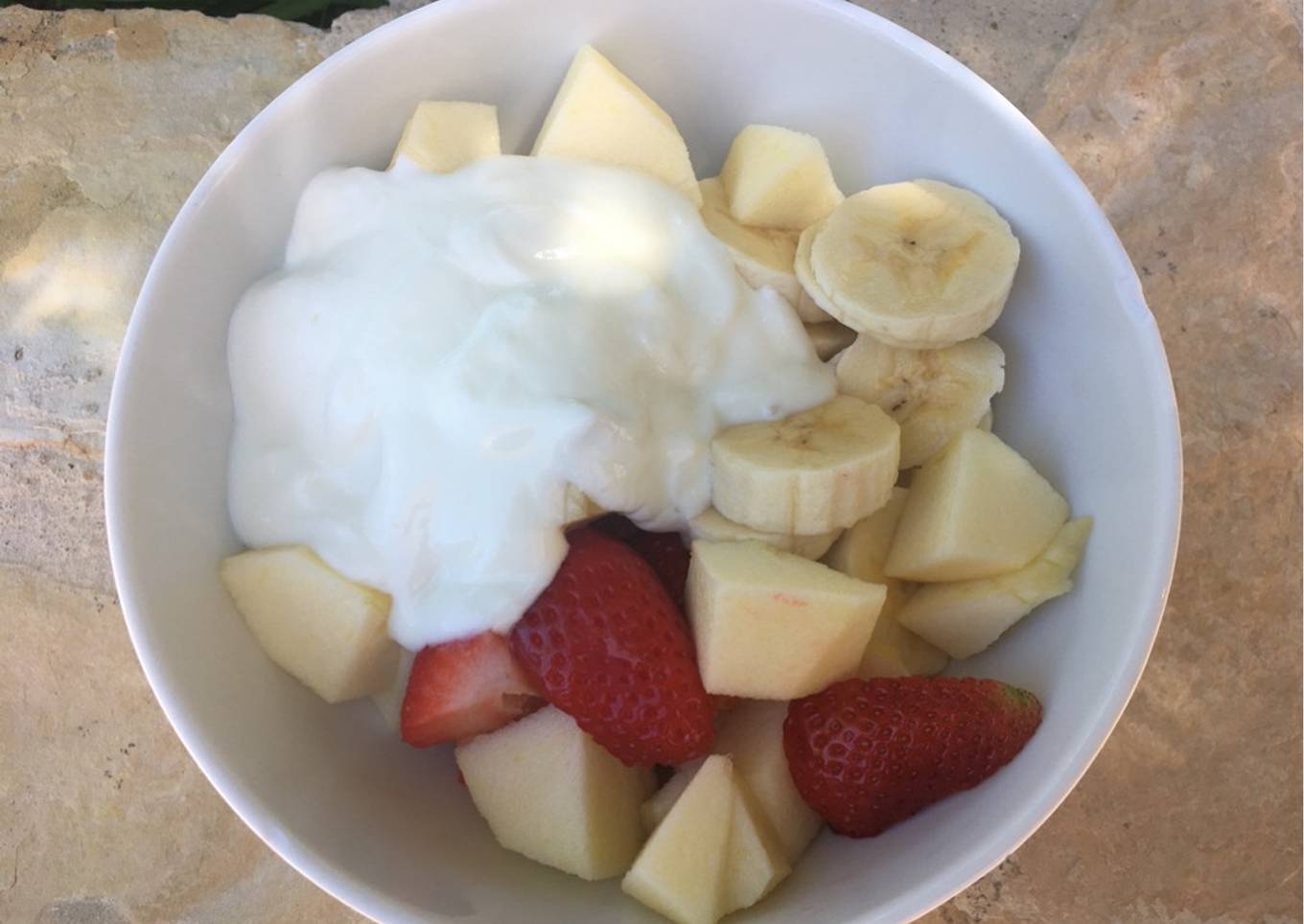 - Cortar la fruta en trocitos y agregar el yogur.