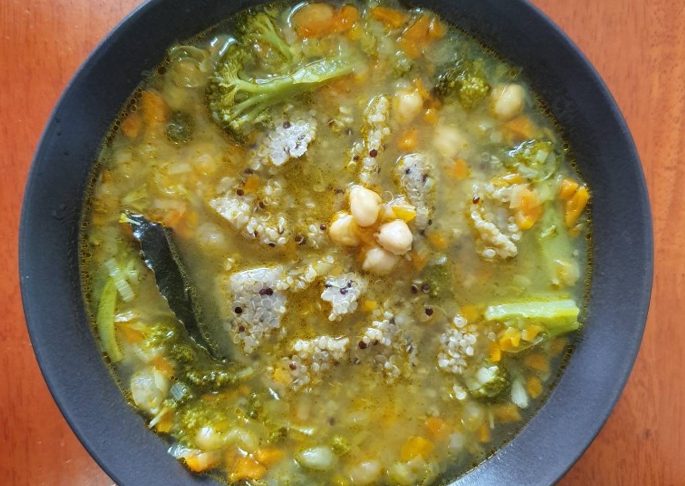 - Después añadirle la quinoa (yo utilice los tarritos de quinoa roja y Blanca de mercadona) y dejarlo 1 min más. Y a disfrutar. Puedes decorar el potaje con un huevo duro partido por la mitad y colocado encima.