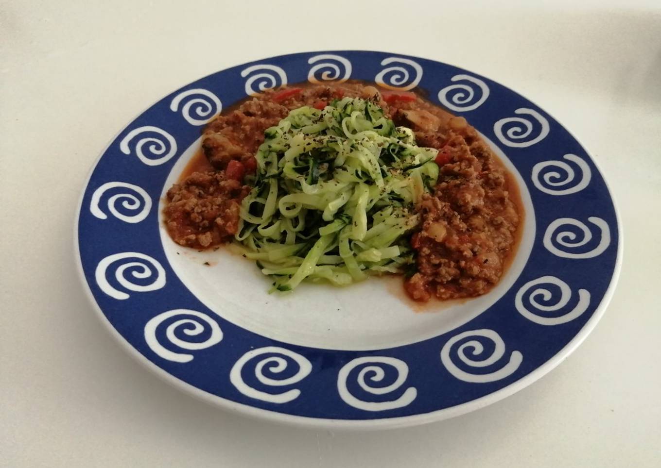 Hello everybody, it is me, Dave, welcome to my recipe page. Today, I will show you a way to prepare a distinctive dish, Tallarines de calabacín con boloñesa y hongos. One of my favorites. This time, I will make it a bit tasty. This is gonna smell and look delicious.