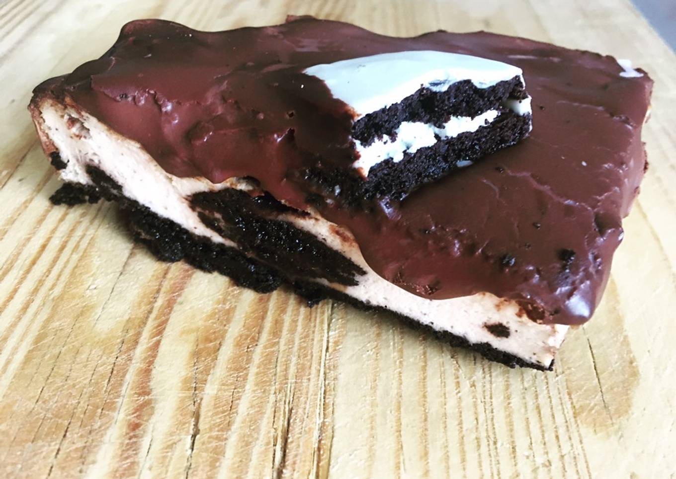 - Trituramos las 6 galletas oreo sin azúcar con la crema incluida y la mezclamos con el aceite de coco derretido lo ponemos en el fondo del molde esparciéndolo bien y apretando como base dejamos enfriar en la nevera