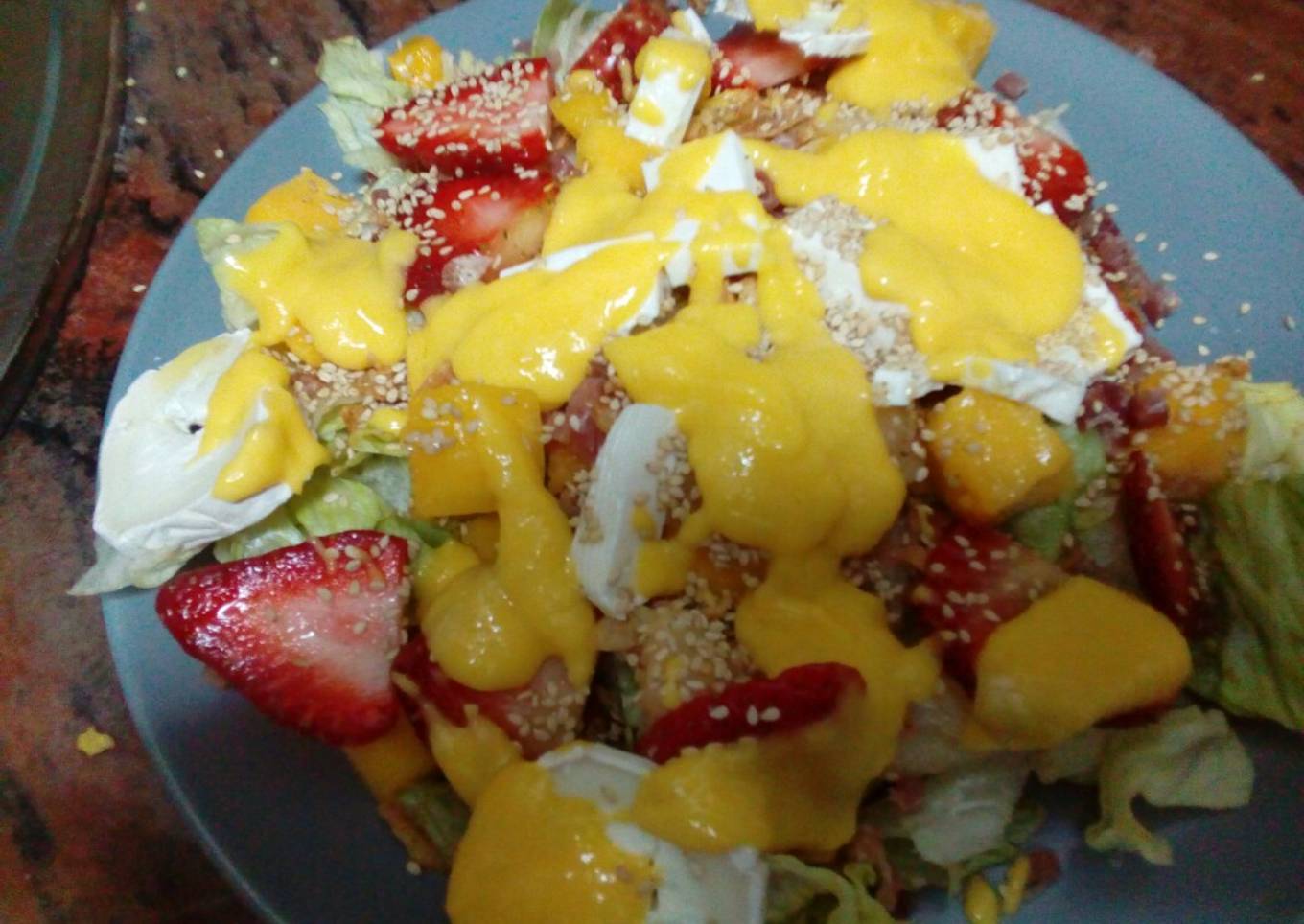 Ensalada de mango pera fresas y vinagreta de mango