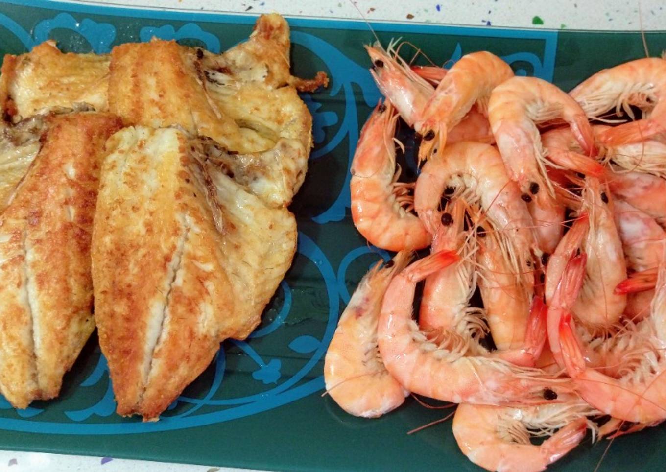 - En una fuente colocamos las doradas y los langostinos cocidos y así cada comensal puede servirse la cantidad que guste en su plato.