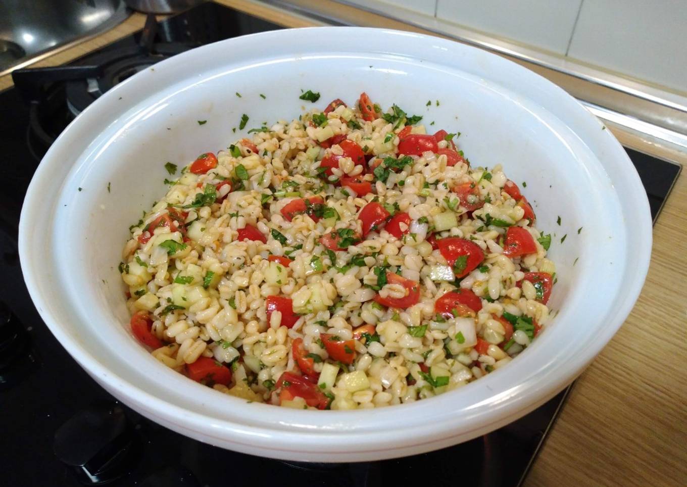 Siempre refrescante y deliciosa. Ésta vez la preparé con trigo tierno, en vez de con los tradicionales cous-cous o con bulgur.