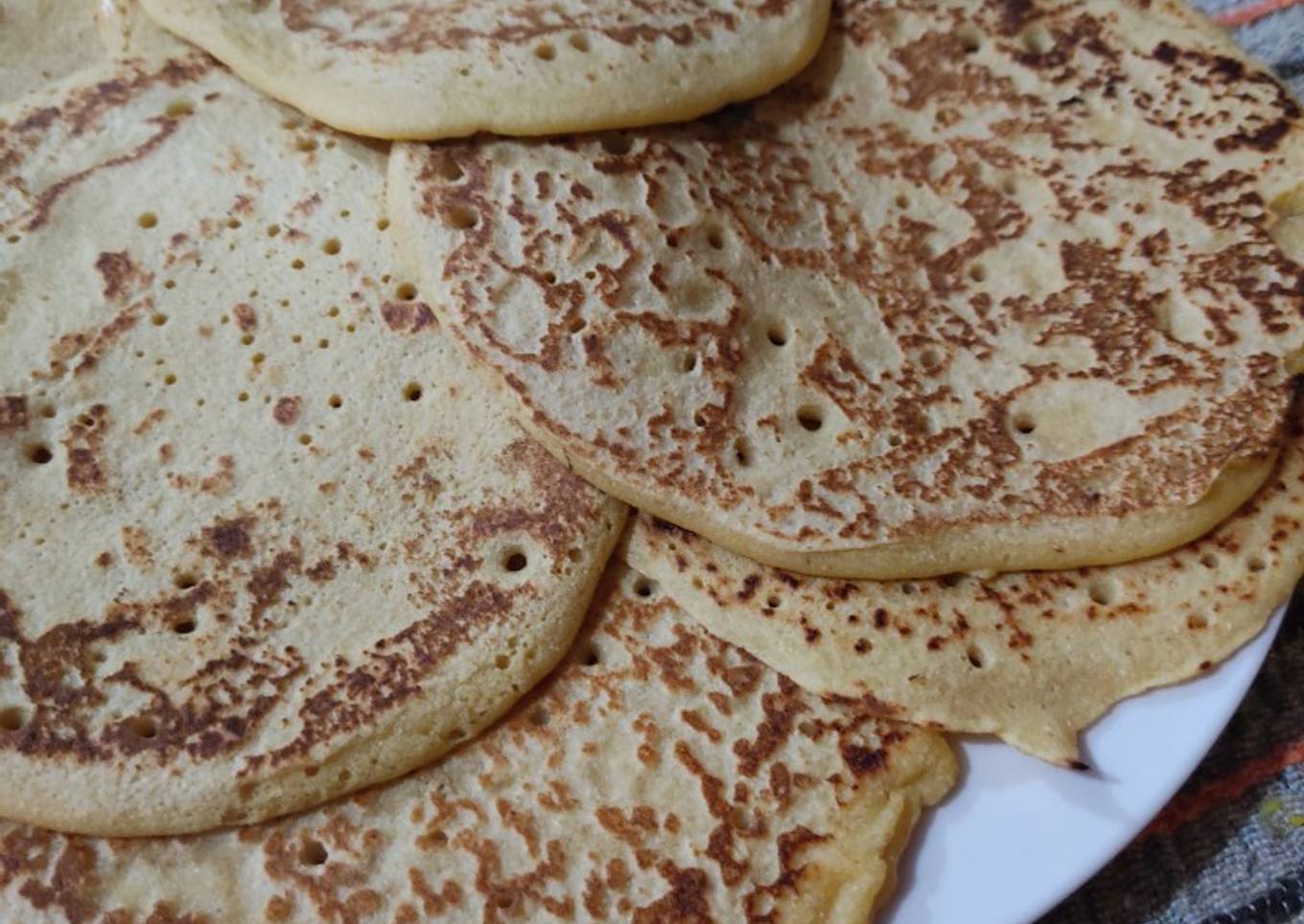 - Aceitar un sartén, y colocar un poco de mezcla. Cuando se formen burbujitas dar vuelta, esperar 10 segundos y sacar del fuego.