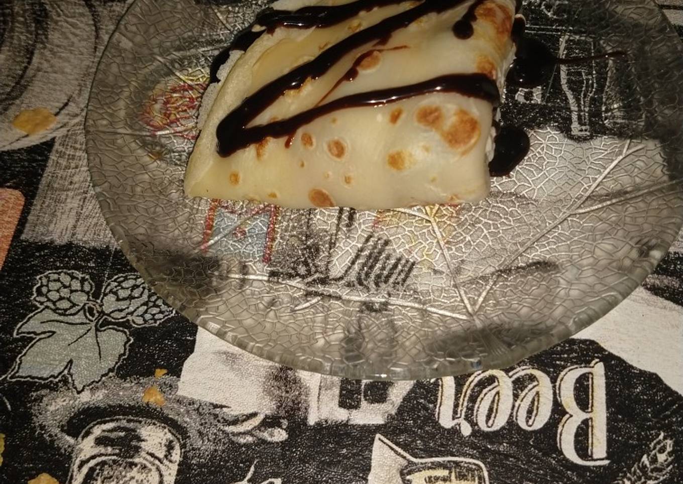 Instructions to make to make Crepas con crema, uvas y salsa de chocolate