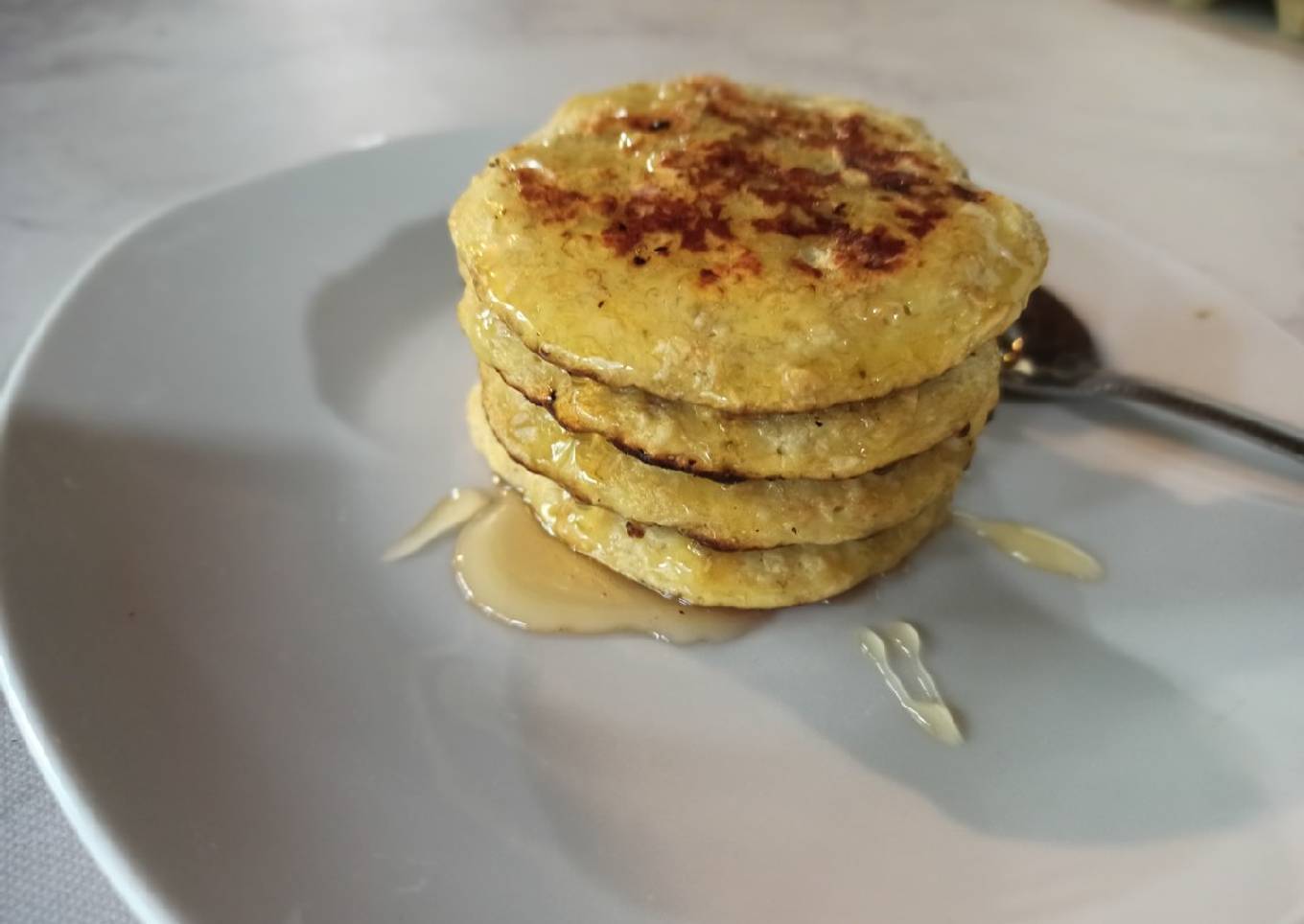 - De a 2 cucharadas crear círculos en la sartén caliente. Cocinar unos minutos y dar vuelta para cocinar del otro lado, hasta dorar.