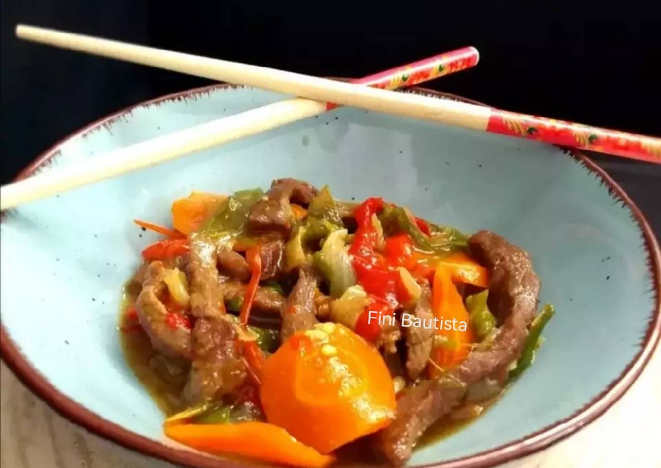 - Ponemos en un bol la carne añadiendo la soja la salsa de ostras el aceite de sésamo la maicena la puntita de bicarbonato y la pimienta blanca lo mezclamos bien y reservamos en la nevera por una hora
